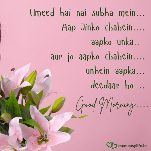 हर सुबह नई उम्मीदों और सकारात्मक ऊर्जा के साथ शुरू होती है। Mcmeasylife पर हम आपके लिए खास गुड मॉर्निंग शायरी ( good morning shayari ) और दिल छू लेने वाली सुबह की शायरी ( morning shayari ) लेकर आते हैं। यहाँ आपको आकर्षक shayari good morning images और प्रेरणादायक गुड मॉर्निंग स्टेटस मिलेंगे, जिन्हें आप अपनों के साथ साझा कर सकते हैं। हमारे संग्रह में शामिल हैं good morning ki shayari के कोट्स जो आपके दिन को खुशनुमा बनाने और रिश्तों में मिठास भरने का एक बेहतरीन तरीका हो सकते हैं।